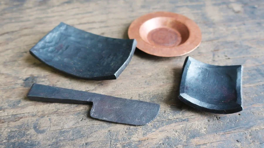During this 2 day course you will experience what it is like to shape both copper and steel using fire and hammers. You will forge a series of rustic steel cheese knives, and some small copper and steel serving dishes to match. These dishes are perfect for accompanying fruits, nuts, jams and dips.